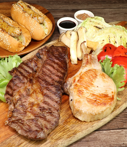 豪快なビーフステーキはBBQの主役!焼きやすさも考え抜かれているので、誰でも簡単に美味しく焼き上げることができます。骨付き肉は、豪快にかぶりつける楽しさと、骨周りの旨味が魅力。お子様にも人気のホットドッグは、手作り生ソーセージをバンズにはさんで市販のものとは違う、特別な味わいを提供できます。付属の甘口ソースと辛口スパイスで味の変化もお楽しみください。