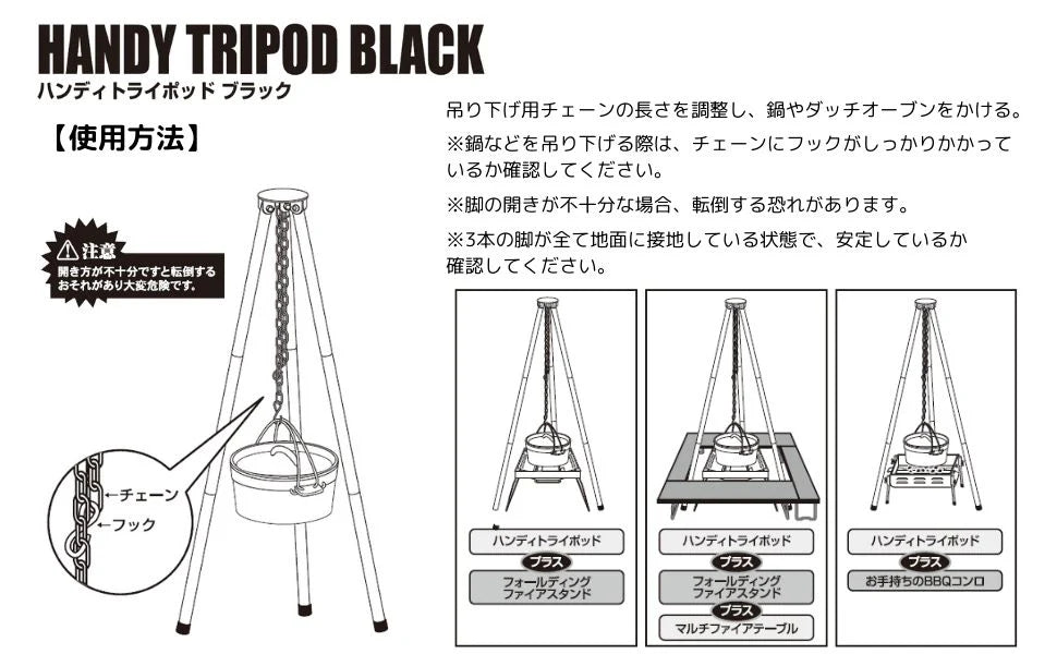 - 焚火での吊り下げ調理に。