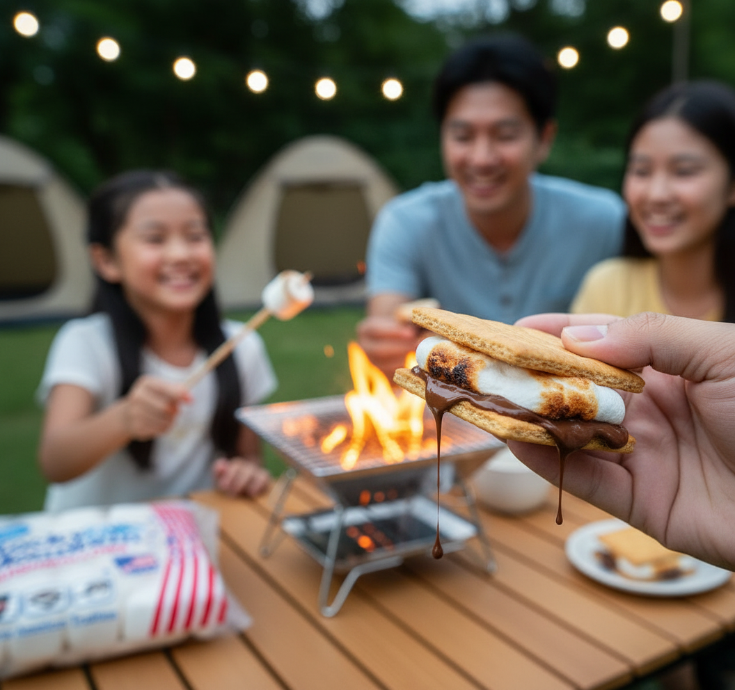 - コーヒーやココア、クラッカーなどと組み合わせた「焚き火スイーツセット」として提案するのも効果的です。