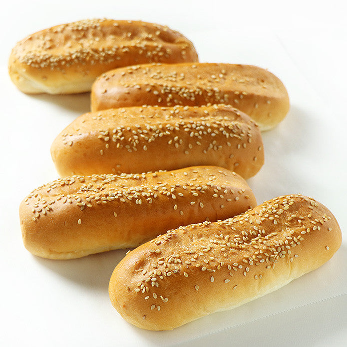 1本約16cmのゴマ付きホットドッグバンズ5本入り。