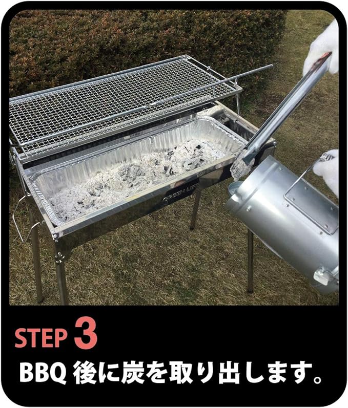 ・BBQ後に残った灰は本製品と一緒に丸めて捨てるだけなので、片付けがカンタンです。