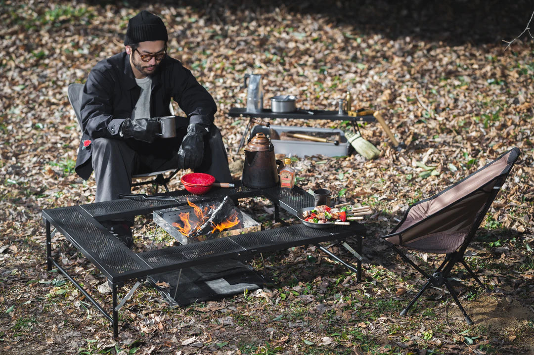 立ってBBQ調理に。座って焚火調理にも使えます。