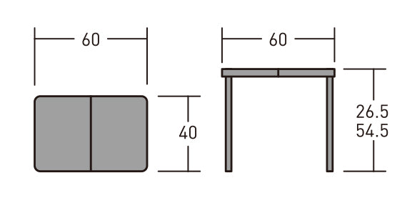 サイズ幅60x奥行き40x高さ26.5/54.5cm