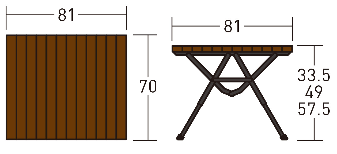 サイズ幅81x視界70x高さ33.5/49/57.5cm