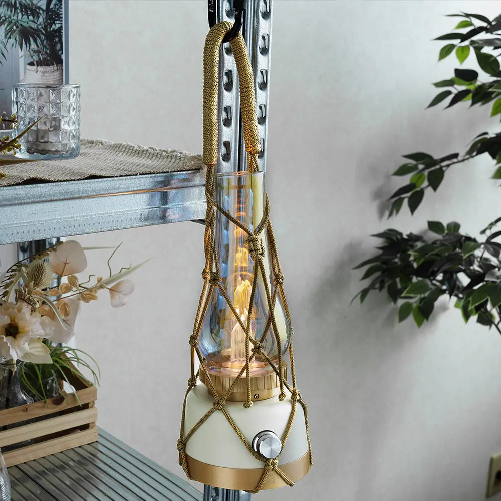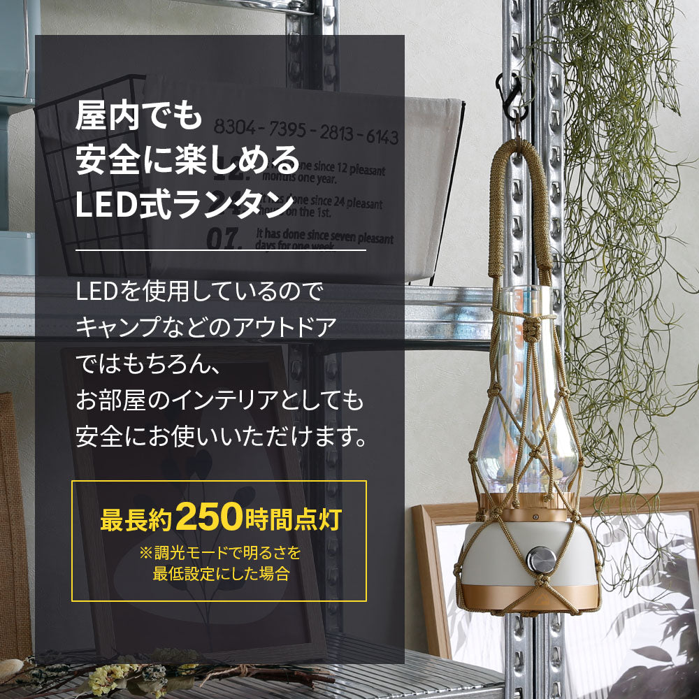 付属のネットを使えば大丈夫で使ったり、ランタンハンガーに吊り下げたりでき、使用シーンの幅が広がります。 LEDランタンなのでネットへの引火の心配もありません。
