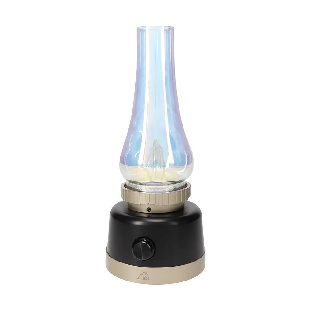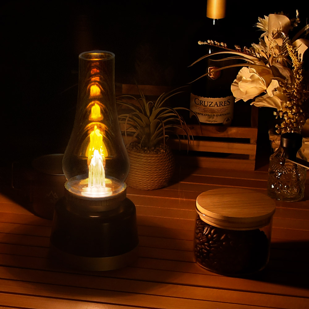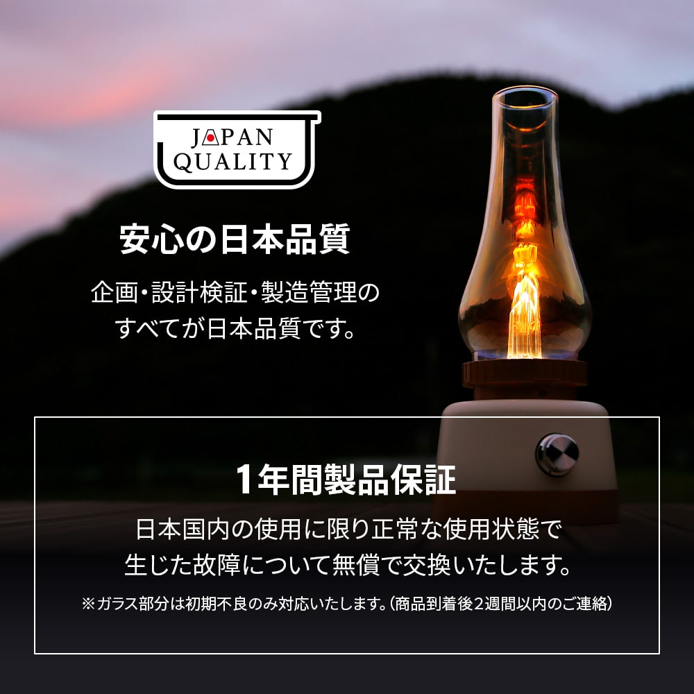 ゆらめく炎のような光がオーロラガラスと合うことで、琥珀色の幻想光の連なりを観察します。 火を使わないためお子様のいるご家庭でも安全にお使いいただけます。