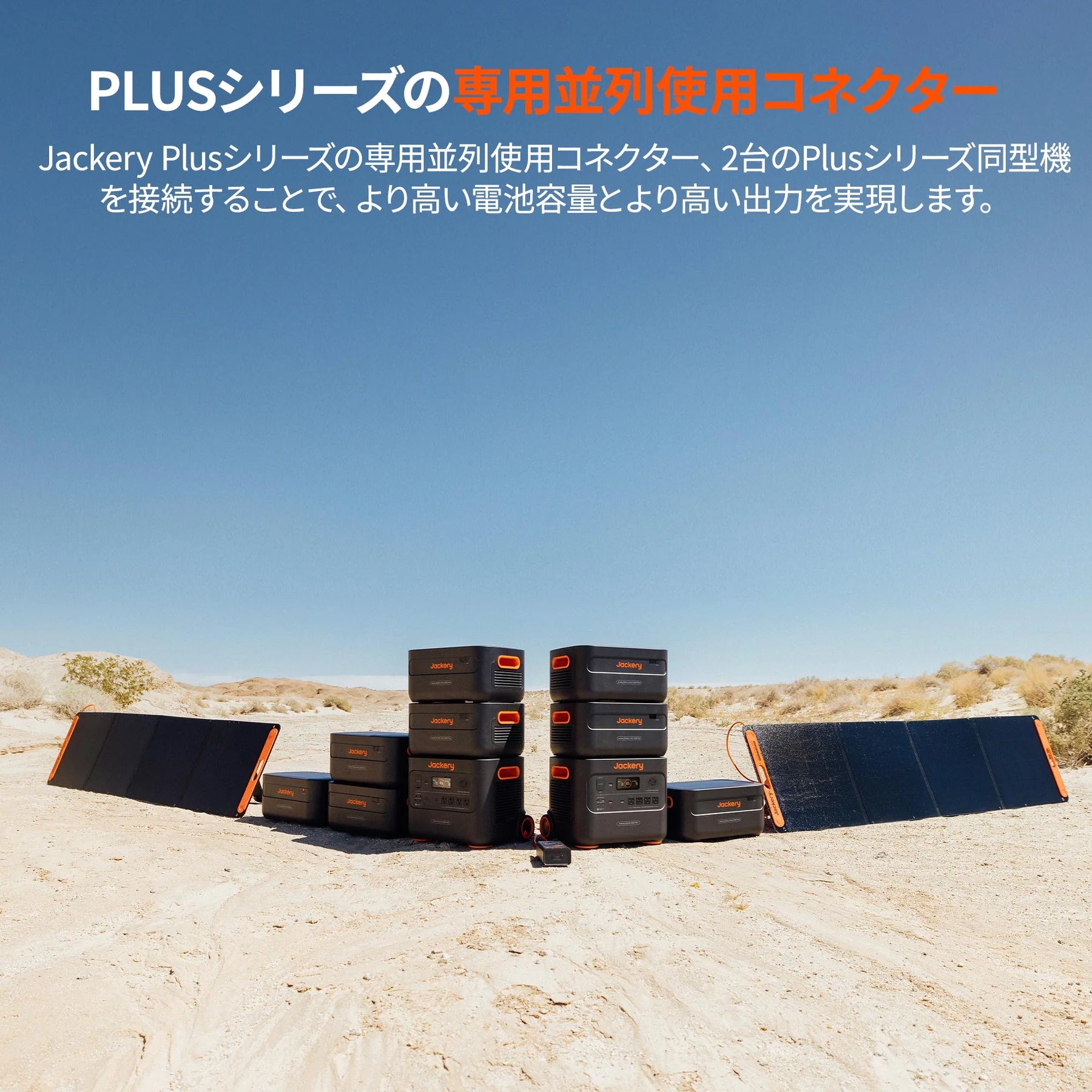 Jackery電池容量拡張技術により、最大5つの拡張バッテリーに接続でき、電気容量を2kWhから12kWhまで自由に選びます。Jackery AC並列機技術を採用、Jackery Connectorを介して2台のJackeryポータブル電源2000 Plusを使用する場合、Jackery Connectorある2つのACコンセント本体は4000Wの定格出力と8000Wの瞬間最大出力を実現し、電化製品はほぼすべて稼働できます、拡張バッテリーも同時利用する場合、ポータブル電源の容量が最大24kWhに拡張できます。