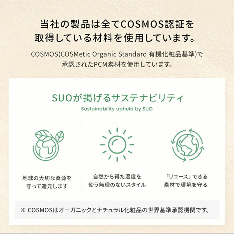 COSMOS認証を取得している材料を使用。地球環境を守る取り組みを行っています。